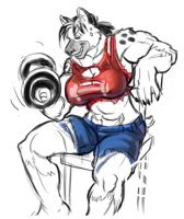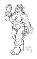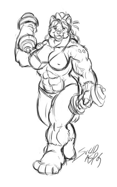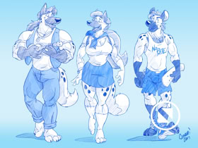 Austeria has a muscular yet feminine build, nearly as big as her older brother. While strong, she usually maintains a bit of softness about her. Her features tend a bit more towards coyote: triangular ears, long muzzle, long bushy tail.