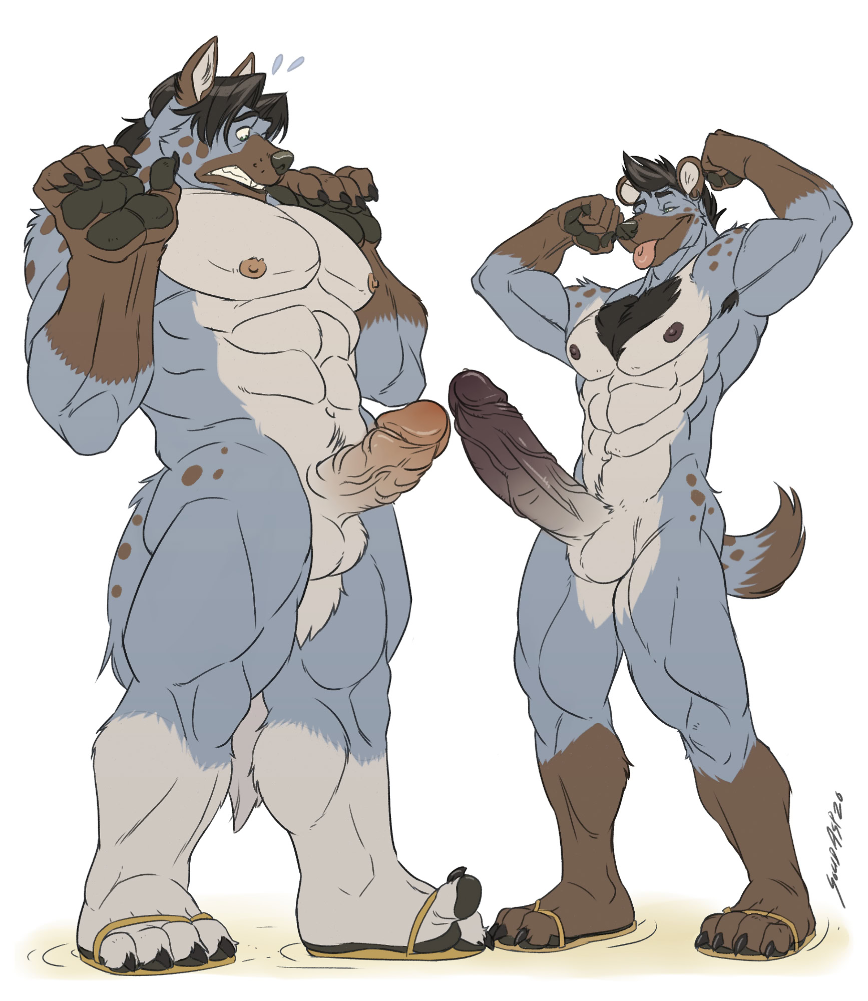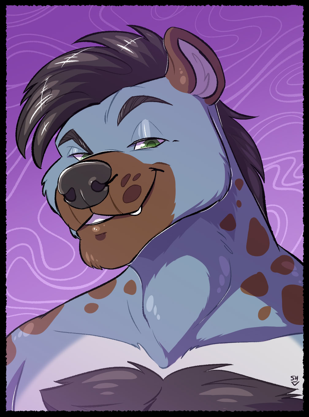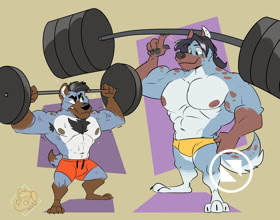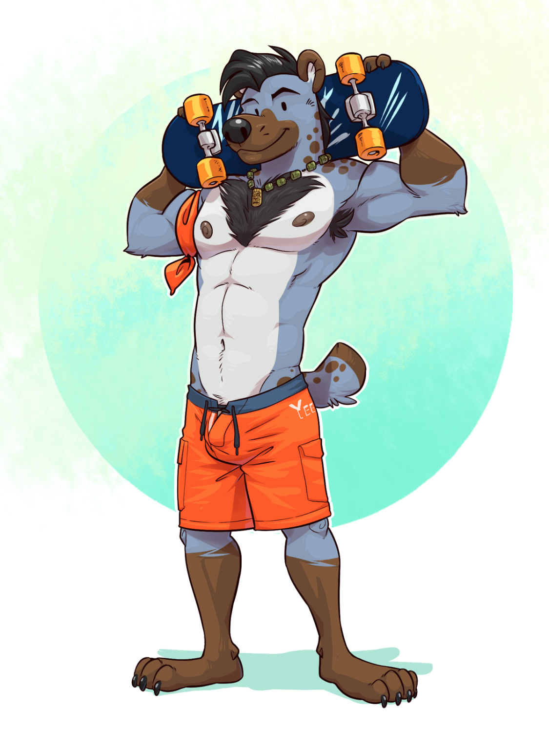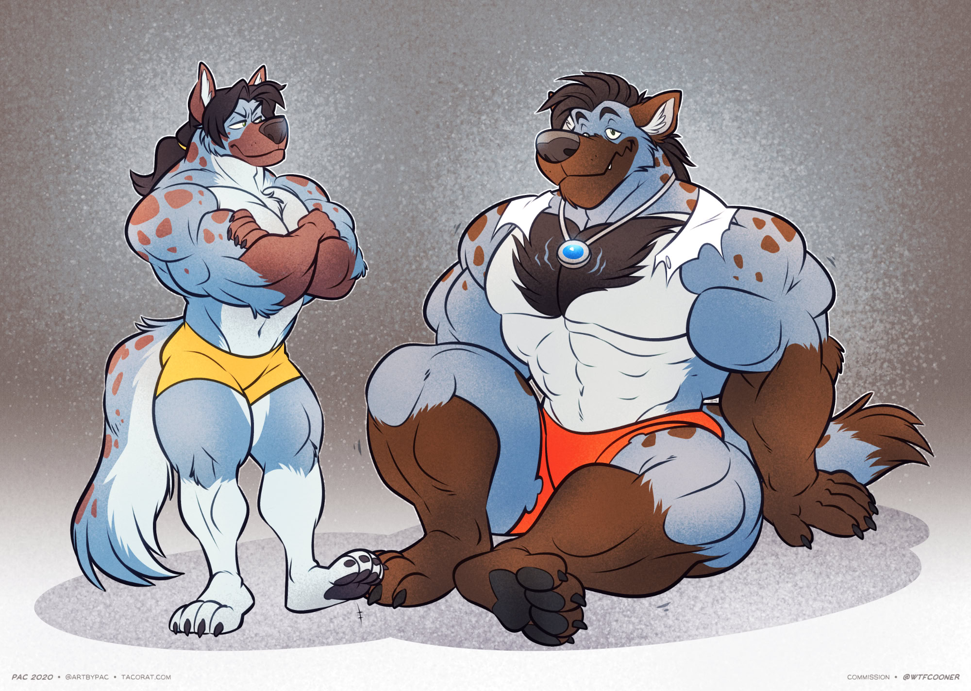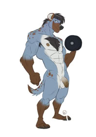 Eurus has a much leaner build, unable to build as much mass as his older siblings; but he’s still put the work in over the years, and has developed an impressive athletic build. His features tend a bit more towards hyena than his other siblings: larger round ears, shorter muzzle, short curled tail.