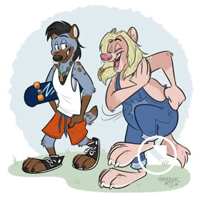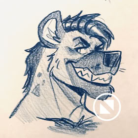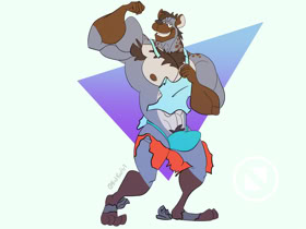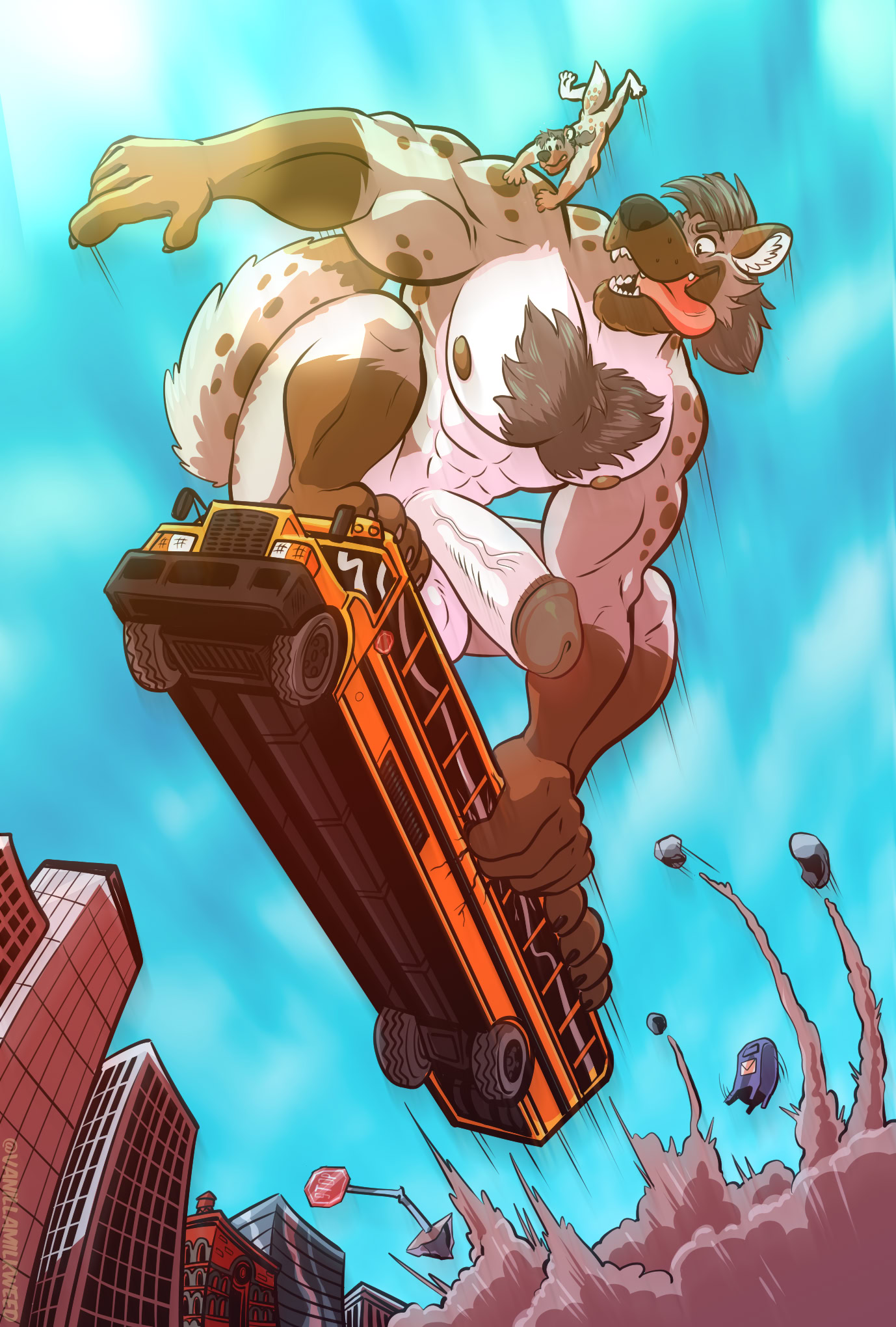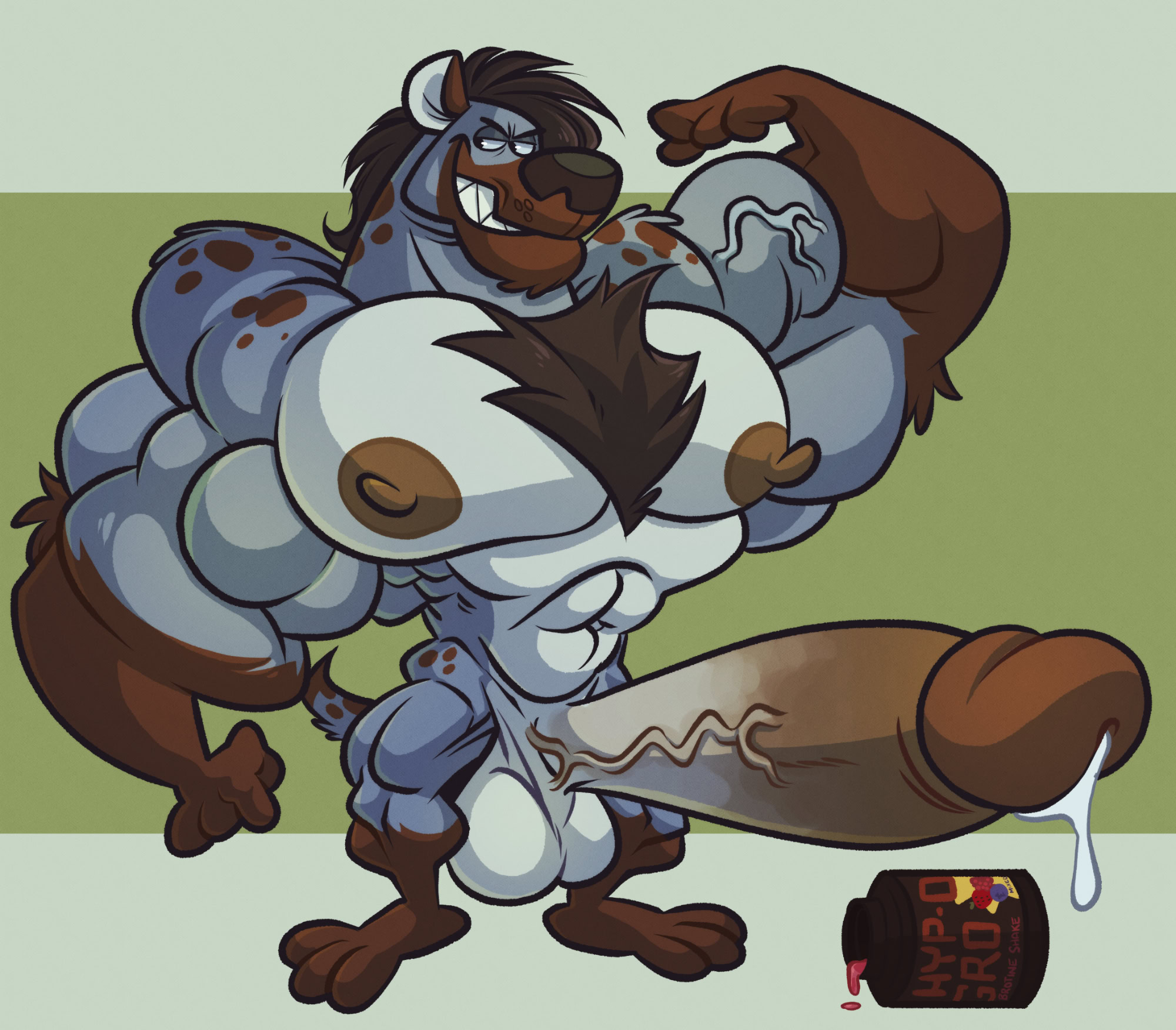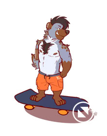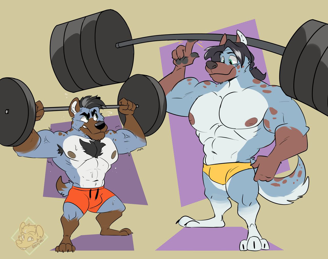 Eurus has a much leaner build, unable to build as much mass as his older siblings; but he’s still put the work in over the years, and has developed an impressive athletic build. His features tend a bit more towards hyena than his other siblings: larger round ears, shorter muzzle, short curled tail.